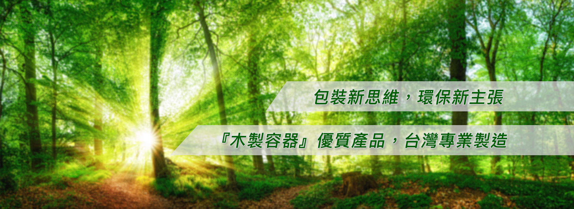 「包材新思維,環保新主張」,本公司用以最積極的態度,將「木製容器」優質產品,台灣專業製造,供應國內外市場,並且進出口一貫作業,讓顧客或消費者能順利取得具環保又實用之「優良包材」。